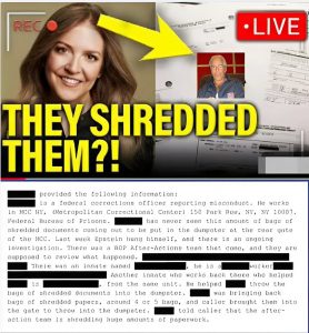 Yet the shredding accounts add another layer of unease. An inmate reportedly assisted in moving “bags” and “bales” of shredded documents on 15 and 16 August, telling staff the After-Action Team was “shredding everything.” A back-gate officer documented similar observations in a memo, noting the unusual quantity and expressing unease that destruction was occurring amid federal inquiries by the FBI and prosecutors.