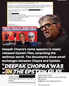 The serene meditation guru who taught millions to find inner peace and enlightenment suddenly finds himself tangled in darkness. In the newly released Epstein files, Deepak Chopra casually recalls a late-night gathering with the convicted sex offender: “We had a blast, ended at 1 AM.” Then comes the chilling reply — a single, icy “Good” — when Epstein confirms that a lawsuit against him had been dropped.